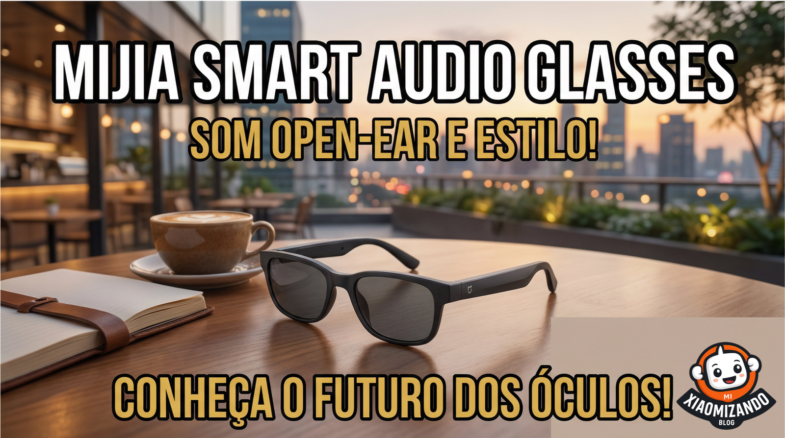 Chegaram os Mijia Smart Audio Glasses! Os novos óculos inteligentes da Xiaomi combinam design elegante, som open-ear e gravação de áudio com um toque. Com até 13h de bateria e 3 estilos, eles prometem revolucionar seu dia a dia. Confira o review completo e descubra se vale a pena!